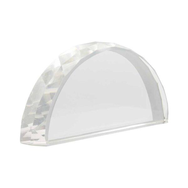 The clarity and durability of optical crystal make this award long-lasting. Crystal maintains its brilliance for decades without yellowing, clouding, or fading. The polished edges and smooth surfaces resist scratching, ensuring that the award remains pristine. Its solid weight adds to its premium feel, giving recipients a sense of luxury and significance the moment they hold it. This durability makes the Charming Semi Circle Crystal Award an heirloom-quality piece—one that can be proudly displayed for a lifetime.