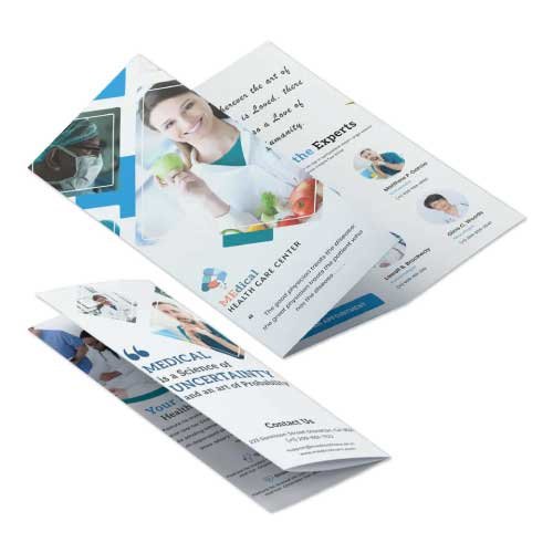 A brochure is an informative paper document that can be folded into a template, pamphlet, or leaflet. A brochure can also be a set of related unfolded papers put into a pocket folder or packet.