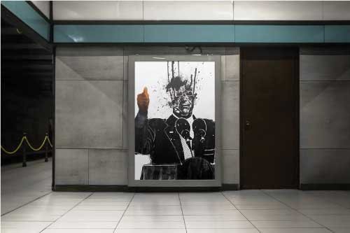A poster is a temporary promotion of an idea, product, or event put up in a public space for mass consumption. Typically, posters include both textual and graphic elements, although a poster may be either wholly graphical or wholly text. Posters are designed to be both eye-catching and informative.