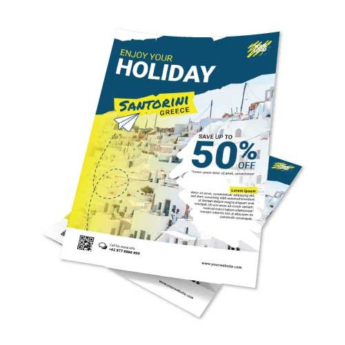 A flyer is a form of paper advertisement intended for wide distribution and typically posted or distributed in a public place, handed out to individuals or sent by mails.