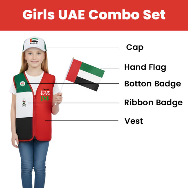 UAE National Day Girls Vest | UAE Flag Vest with Combo Cap, Badge & Ribbon