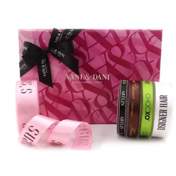 Versatile Applications for Professional and Decorative Uses: Beyond packaging, this custom satin ribbon serves various applications across industries, making it suitable for professional branding, special events, corporate gifts, and decorative accents. Whether used as gift ribbon or for pre-tied bow ties, this customizable ribbon enables businesses to add a branded touch to events, enhancing the overall customer experience. It’s a functional yet stylish addition that complements the brand’s identity, perfect for making lasting impressions at corporate events or promotional giveaways.
